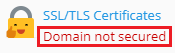 To manage an SSL/TLS certificate of a domain, go to Websites & Domains > your domain. You can see the current security status of the domain under SSL/TLS Certificates: