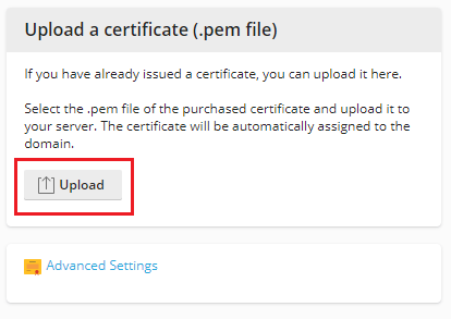 Go to Websites & Domains > your domain > SSL/TLS Certificates and then click Upload.