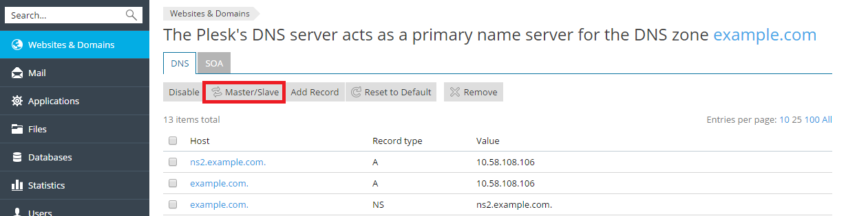 If you host websites on your account and have a standalone DNS server acting as a primary (master) name server for your sites, you may want to set up the Plesk’s DNS server to function as a secondary (slave) name server.