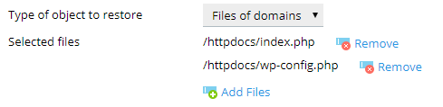 If you selected “Files of domains” during the previous step, click Add files, select the file or files you want to restore, and then click OK.