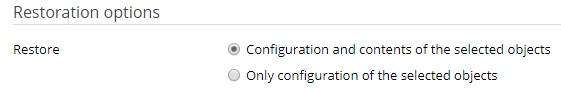 Under “Restore”, select whether to restore only the configuration of the selected objects, or both the configuration and content.