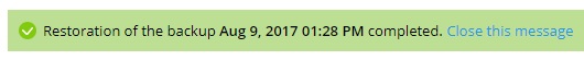 You will be returned to the Websites & Domains > Backup Manager screen where you can see the backup being restored. The restoration process can take some time to finish, depending on the size of content being restored. A notification will come up on this screen once the backup has been restored.