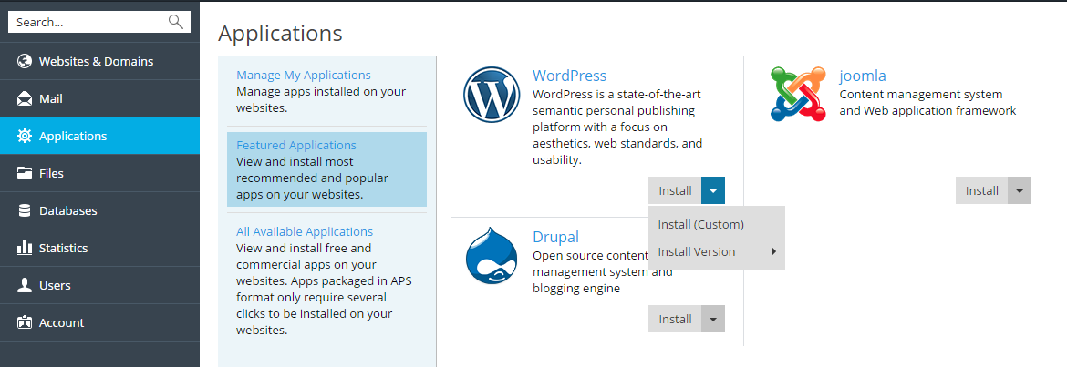 The process of installation is fully automated and does not require any specific skills. To learn how to install web apps from the Customer Panel, refer to the section Installing Apps.