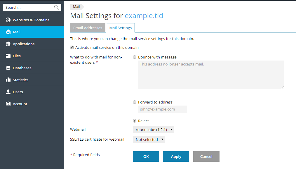 Mail Settings of Domains¶