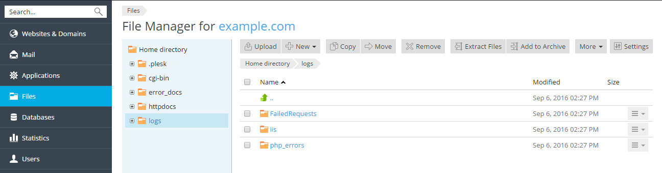 Select Logs in the left frame and click error_log in the list.