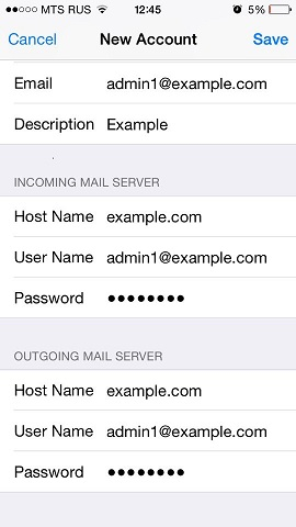 Tap Next. At the top of the next screen select IMAP (if you want to keep copies of received email messages on the server) or POP. Then specify the details of your incoming and outgoing mail servers. For both servers, you should enter the following: