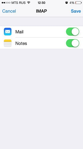 Once the email configuration is added, tap Save to continue. The connection to the specified server will be verified. If the connection is OK, you will see the screen where you can choose what information you want to sync with your phone.