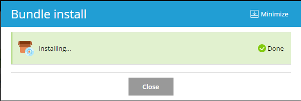 After the progress dialog shows that the installation has completed successfully, the application will be deployed to your web site and restarted.