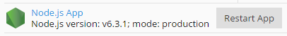 Once you have finished configuring your application, click Enable Node.js to start it. The information about your application, including the Node.js version and the application mode will be displayed below the domain name together with the Restart App button.