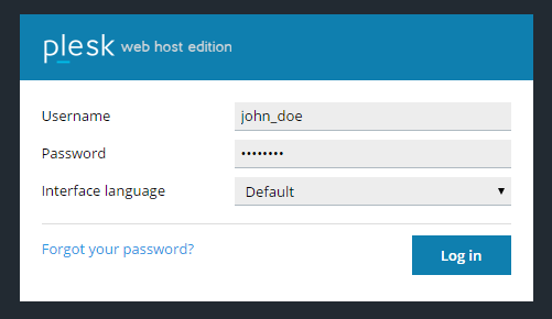 Type in your username and password, and then click Log in. If you want to see the Plesk interface in a specific language, select it from the “Interface Language” menu before logging in.
