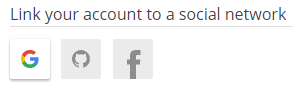 Click the icon corresponding to the social network account you want to use to log in to Plesk. Grey icons mark the social networks that are not yet linked to your Plesk account and cannot be used to log in to Plesk.